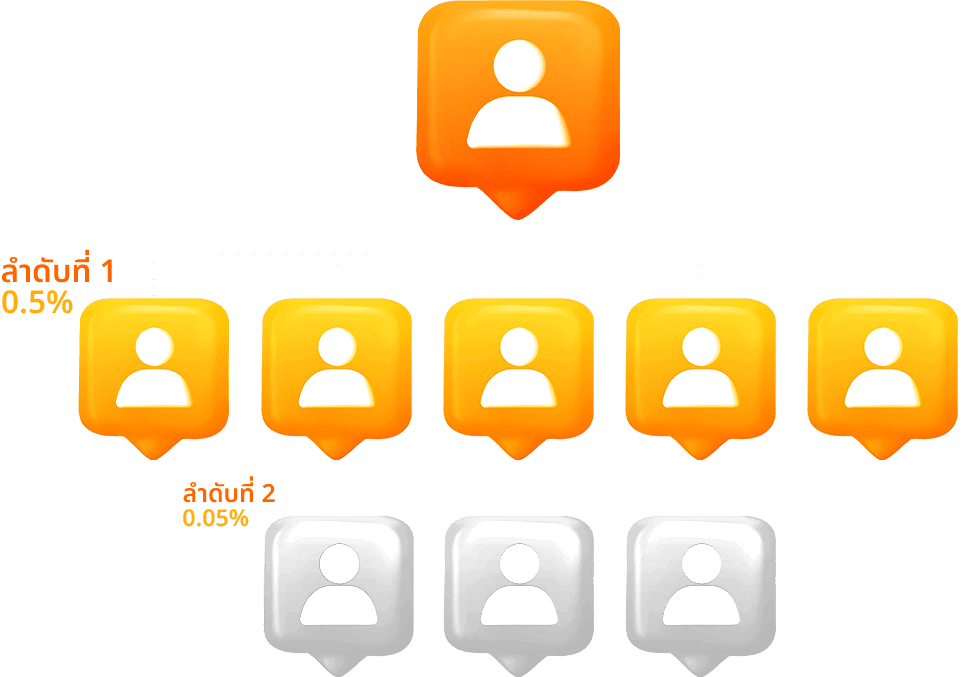 • ท่านจะได้รับส่วนแบ่งเริ่มต้นในดับที่ 2 0.05%