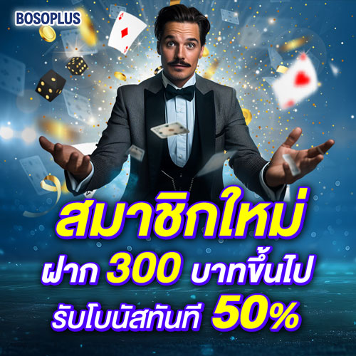 สมาชิกใหม่ BOSOPLUS ฝาก 300 ขึ้นไป รับโบนัสทันที 50%